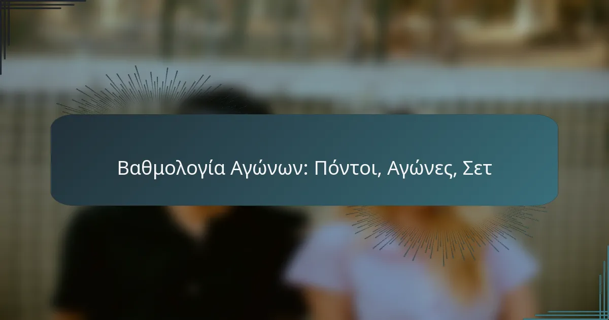 Τα συστήματα βαθμολόγησης παιχνιδιών είναι απαραίτητα για την παρακολούθηση της απόδοσης σε αθλήματα, χρησιμοποιώντας πόντους για να ποσοτικοποιήσουν τα επιτεύγματα και να καθορίσουν τους νικητές. Κάθε παιχνίδι αντιπροσωπεύει ένα τμήμα του ανταγωνισμού, ενώ οι σετ συγκεντρώνουν αυτά τα παιχνίδια για να επηρεάσουν το συνολικό αποτέλεσμα του αγώνα. Η κατανόηση αυτών των στοιχείων είναι ζωτικής σημασίας τόσο για τους παίκτες όσο και για τους θεατές.