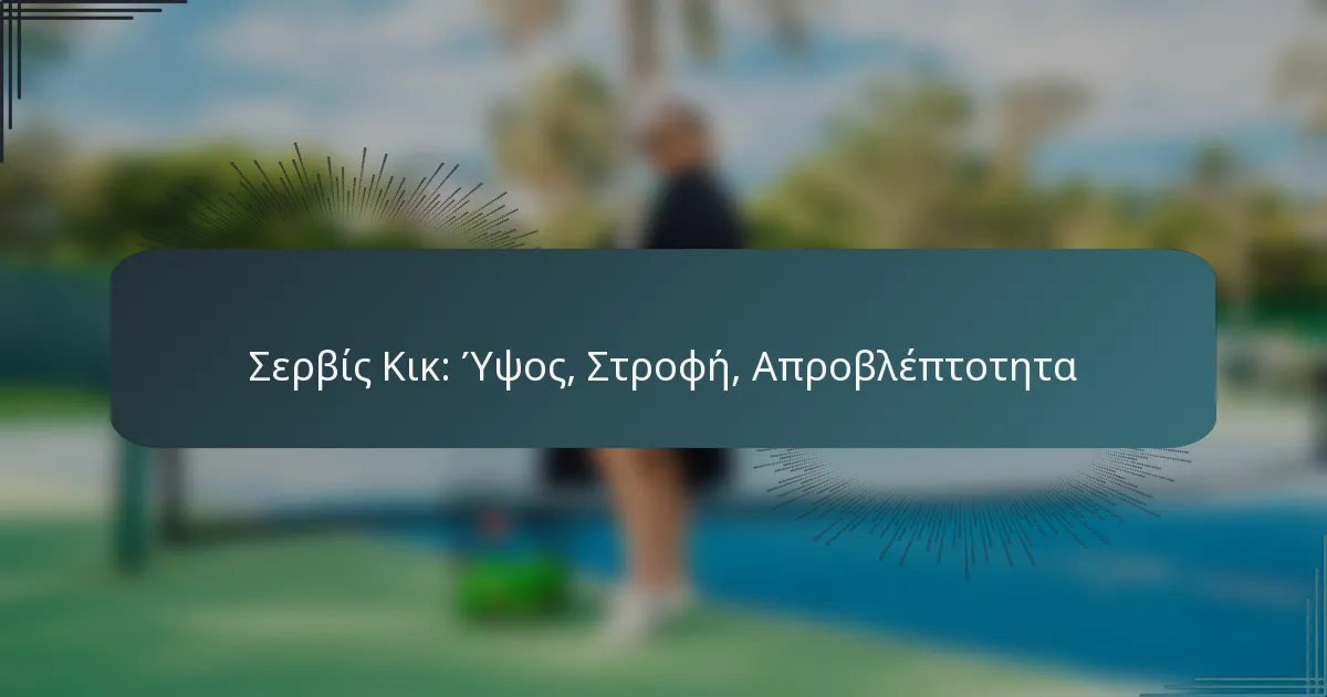 Η κίνηση του σερβίς είναι ένα ισχυρό σερβίς τένις που χαρακτηρίζεται από την υψηλή αναπήδηση και την περιστροφή, καθιστώντας δύσκολη την επιστροφή από τους αντιπάλους. Για να εκτελέσετε μια κίνηση του σερβίς αποτελεσματικά, εστιάστε στη λαβή σας, τη στάση, το ύψος της ρίψης και τις τεχνικές ολοκλήρωσης για να δημιουργήσετε την επιθυμητή περιστροφή και απ unpredictability.